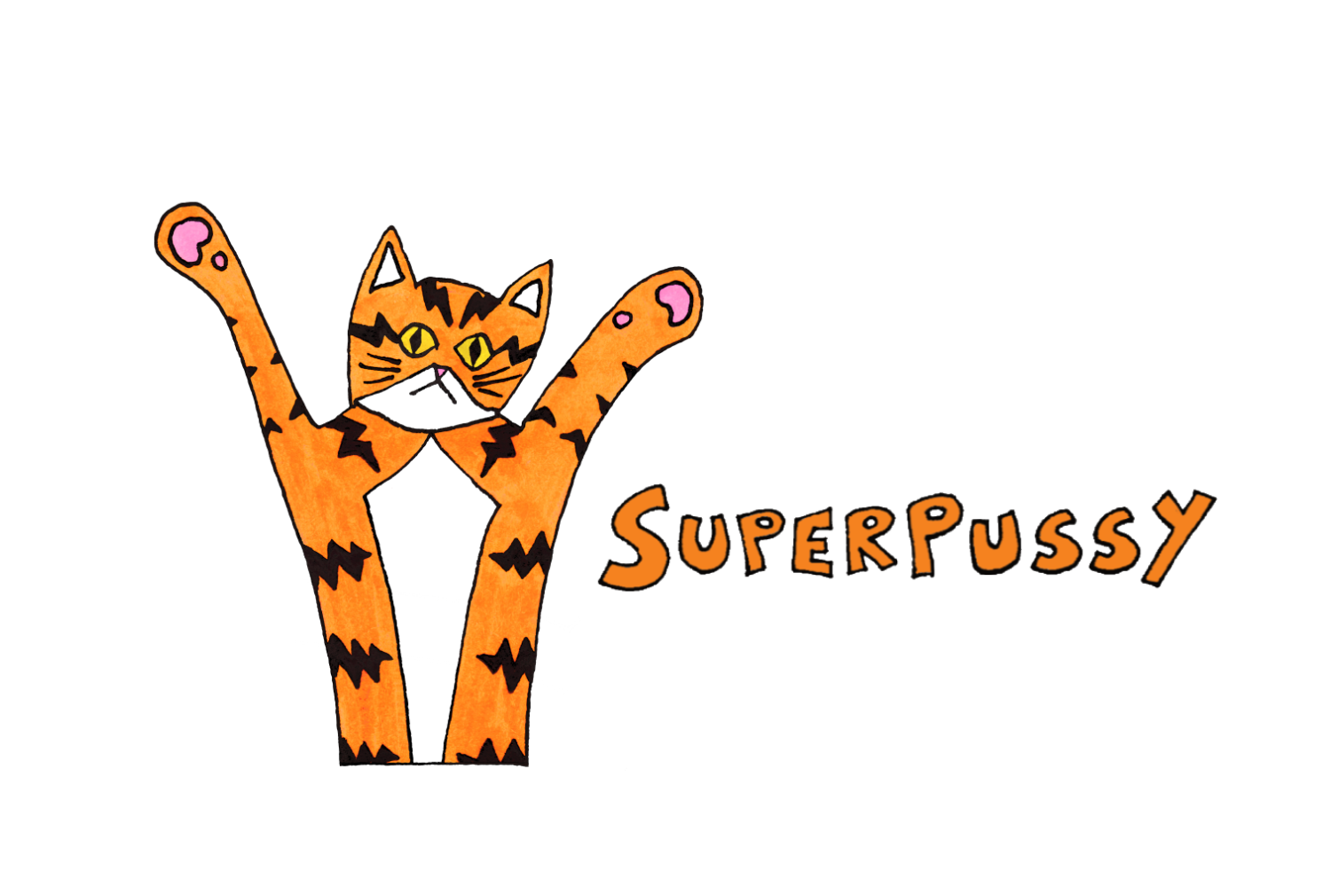 Welcome to Superpussy, the purrfect place to find colorful and quirky drawings, greeting cards, and more, all featuring my beloved feline muse, Superpussy.