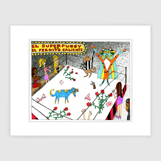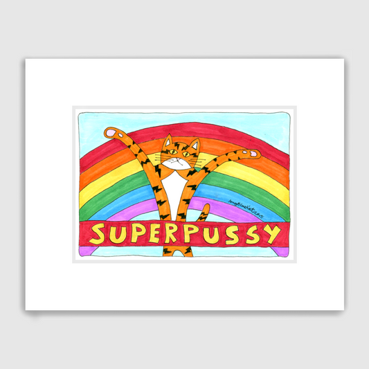 Welcome to Superpussy, the purrfect place to find colorful and quirky drawings, greeting cards, and more, all featuring my beloved feline muse, Superpussy.