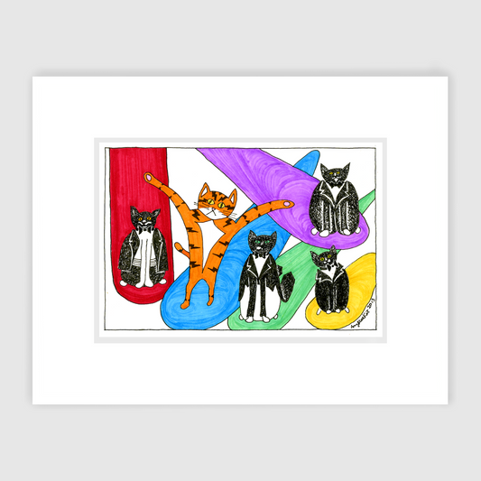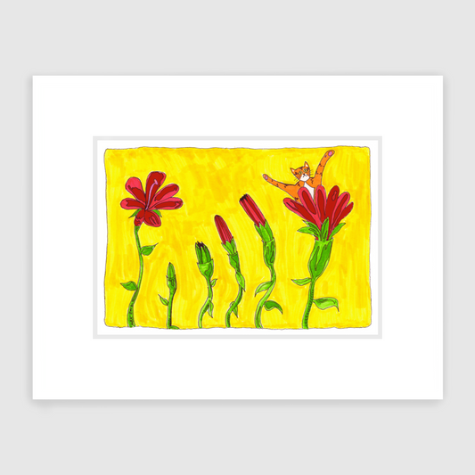 Whimsical and colorful cat-themed art and greeting cards featuring the adventurous, honorable, and beloved feline friend and hero: Superpussy.
