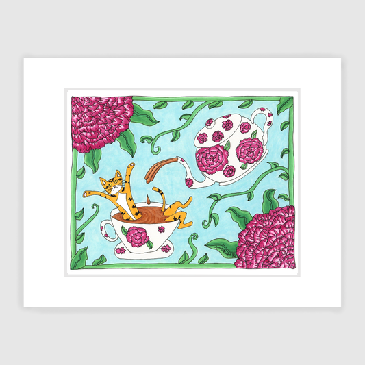 A variety of goods to hold your favorite drink while showing your cat love. Coffee mugs, travel mugs, water bottles, wine tumblers, can coolers, and more, all featuring that crazy orange cat--Superpussy!